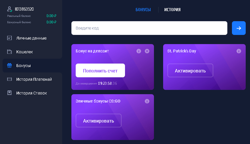 - Зачисление денежных средств на бонусный счёт и обратно на основной производятся моментально.