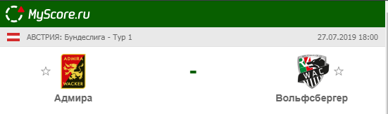 Адмира Ваккер (Мёдлинг) vs Вольфсбергер (Вольфсберг), который состоится 27.07.2019 в 18:00 по МСК.