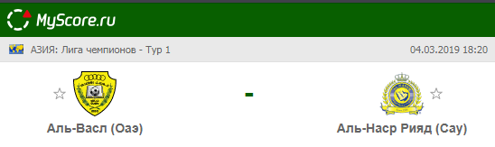 Аль-Васл (ОАЭ) vs Аль-Наср Рияд (Саудовская Аравия), который состоится 04.03.2019 в 18:20 по МСК.