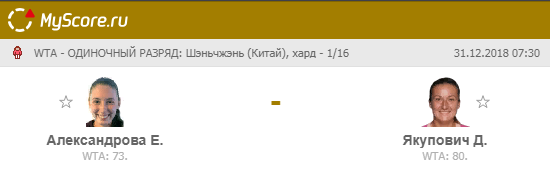 Екатерина Александрова (Россия) vs Далила Якупович (Словения), который состоится 31.12.2018 в 07:30 по МСК.