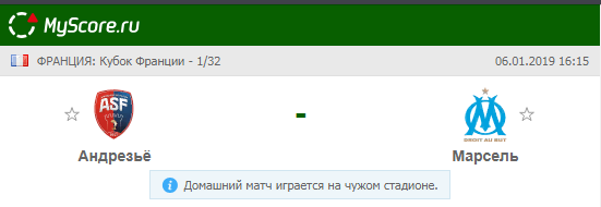 Андрезьё (Андрезьё-Бутеон) vs Марсель (Марсель), который состоится 06.01.2019 в 16:15 по МСК.