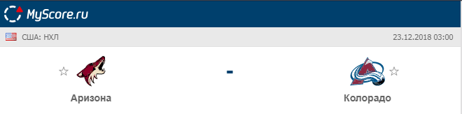 Аризона (Глендейл) vs Колорадо (Денвер), который состоится 23.12.2018 в 03:00 по МСК.