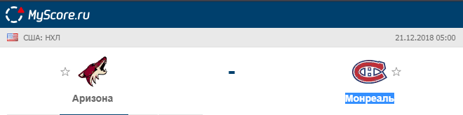 Аризона (Глендейл) vs Монреаль (Монреаль), который состоится 21.12.2018 в 05:00 по МСК.
