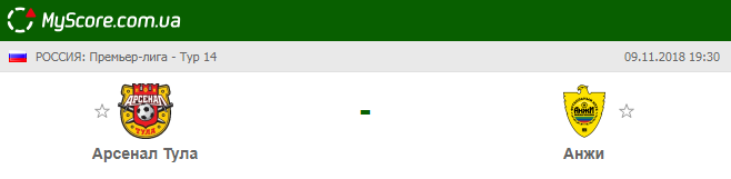 Арсенал (Тула) vs Анжи (Махачкала), который состоится 09.11.2018 в 19:30 по МСК.