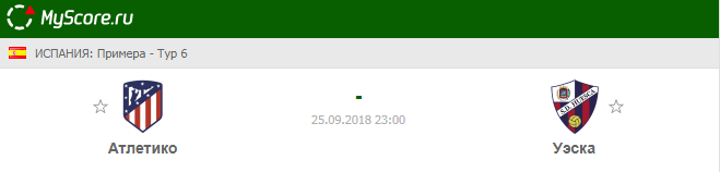 Атлетико (Мадрид) vs Уэска (Уэска), который состоится 25.09.2018 в 23:00 по МСК.