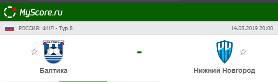 Балтика (Калининград) vs Нижний Новгород (Нижний Новгород), который состоится 14.08.2019 в 20:00 по МСК.