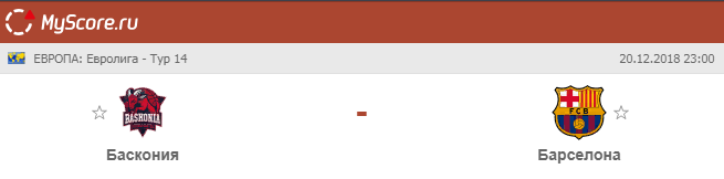 Баскония (Испания) vs Барселона (Испания), который состоится 20.12.2018 в 23:00 по МСК.