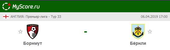 Борнмут (Борнмут) vs Бёрнли (Бёрнли), который состоится 06.04.2019 в 17:00 по МСК.