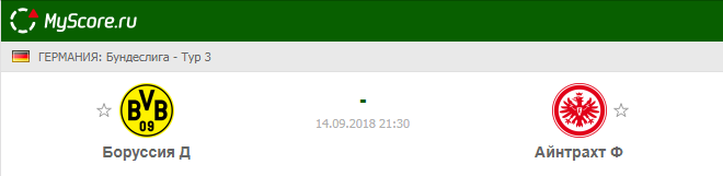 Боруссия (Дортмунд) vs Айнтрахт (Франкфурт), который состоится 14.09.2018 в 21:30 по МСК.