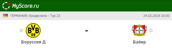 Боруссия (Дортмунд) vs Байер (Леверкузен), который состоится 24.02.2019 в 20:00 по МСК.