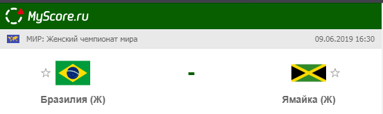 Сборная Бразилии vs Сборная Ямайки, который состоится 09.06.2019 в 16:30 по МСК.