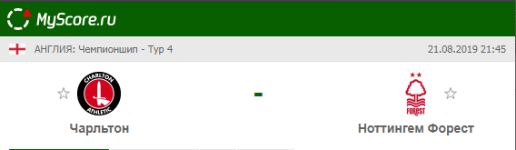Чарльтон Атлетик (Лондон) vs Форест (Ноттингем), который состоится 21.08.2019 в 21:45 по МСК.