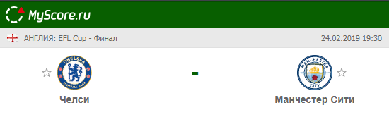Челси (Лондон) vs Манчестер Сити (Манчестер), который состоится 24.02.2019 в 19:30 по МСК.