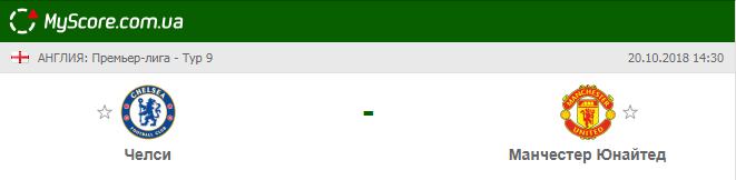 Челси (Лондон) vs Манчестер Юнайтед (Манчестер), который состоится 20.10.2018 в 14:30 по МСК.