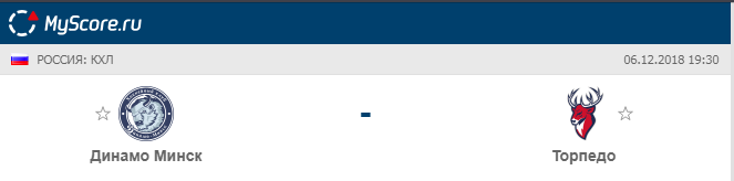Динамо (Минск) vs Торпедо (Нижний Новгород), который состоится 06.12.2018 в 19:30 по МСК.