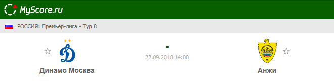 Динамо (Москва) vs Анжи (Махачкала), который состоится 22.09.2018 в 14:00 по МСК.