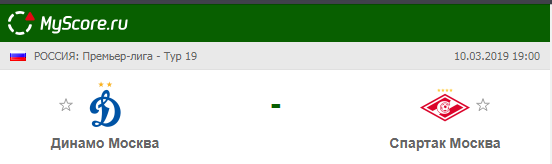 Динамо (Москва) vs Спартак (Москва), который состоится 10.03.2019 в 19:00 по МСК.
