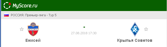 Енисей (Красноярск) vs Крылья Советов (Самара), который состоится 27.08.2018 в 17:30 по МСК.