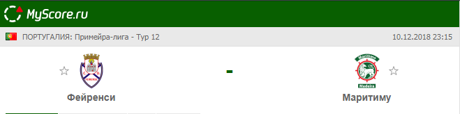Фейренсе (Фейра) vs Маритиму (Фуншал), который состоится 10.12.2018 в 23:15 по МСК.
