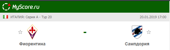Фиорентина (Флоренция) vs Сампдория (Генуя), который состоится 20.01.2019 в 17:00 по МСК.