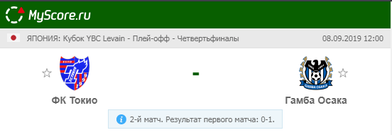 ФК Токио (Токио) vs Гамба (Осака), который состоится 08.09.2019 в 12:00 по МСК.