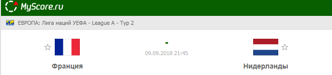 Франции vs Нидерландов, который состоится 09.09.2018 в 21:45 по МСК.