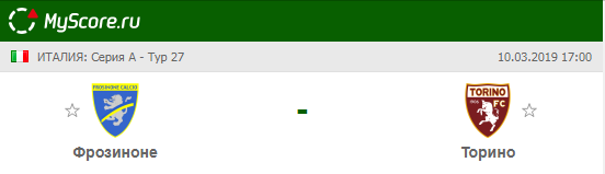Фрозиноне (Фрозиноне) vs Торино (Турин), который состоится 10.03.2019 в 17:00 по МСК.