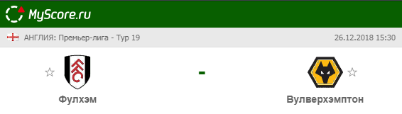 Фулхэм (Лондон) vs Вулверхэмптон (Вулверхэмптон), который состоится 26.12.2018 в 15:30 по МСК.