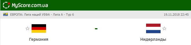 Сборная Германии vs Сборная Нидерландов, который состоится 19.11.2018 в 22:45 по МСК.
