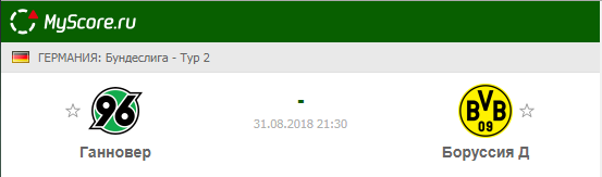 Гонновер 96 (Гонновер) vs Боруссия Д (Дортмунд), который состоится 31.08.2018 в 21:30 по МСК.