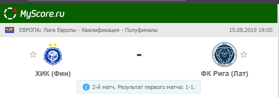 ХИК (Финляндия) vs ФК Рига (Латвия), который состоится 15.08.2019 в 19:00 по МСК.