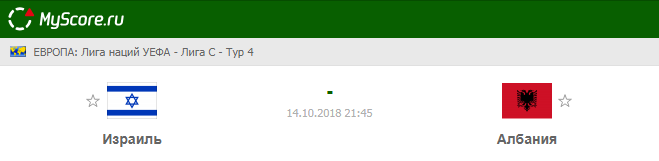 Сборная Израиля vs Сборная Албании, который состоится 14.10.2018 в 21:45 по МСК.