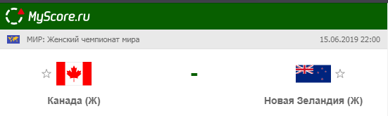Сборная Канады vs Сборная Новой Зеландии, который состоится 15.06.2019 в 22:00 по МСК.
