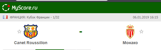 Кане-ан-Руссийон (Кане-ан-Руссийон) vs Монако (Монако), который состоится 06.01.2019 в 16:15 по МСК.