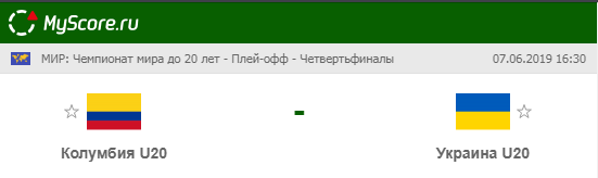 Сборная Колумбии vs Сборная Украины, который состоится 07.06.2019 в 16:30 по МСК.