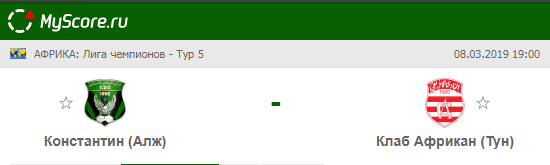 Константин (Алжир) vs Клаб Африкан (Тунис), который состоится 08.03.2019 в 19:00 по МСК.
