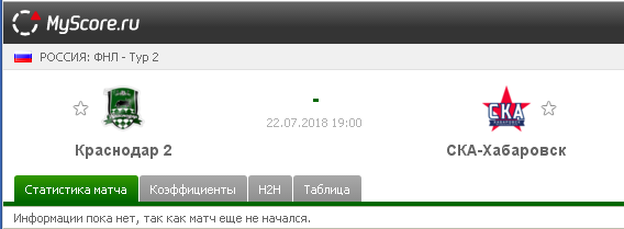 Краснодар-2 (Краснодар) vs СКА-Хабаровск (Хабаровск), который состоится 22.07.2018 в 19:00 по МСК.