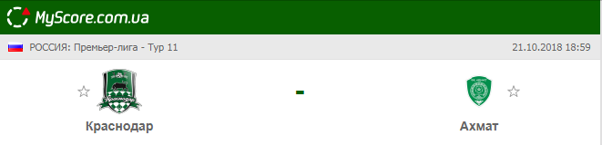 Краснодар (Краснодар) vs Ахмат (Грозный), который состоится 21.10.2018 в 19:00 по МСК.