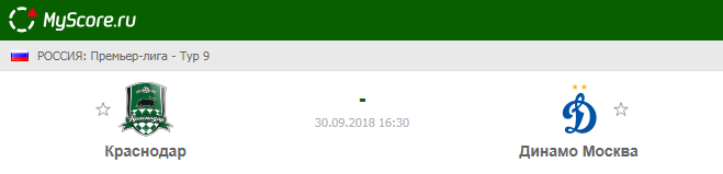 Краснодар (Краснодар) vs Динамо (Москва), который состоится 30.09.2018 в 16:30 по МСК.