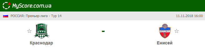 Краснодар (Краснодар) vs Енисей (Красноярск), который состоится 11.11.2018 в 16:00 по МСК.