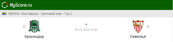 Краснодар (Россия) vs Севилья (Испания), который состоится 04.10.2018 в 22:00 по МСК.