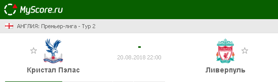Кристал Пэлас (Кройдон) vs Ливерпуль (Ливерпуль), который состоится 20.08.2018 в 22:00 по МСК.