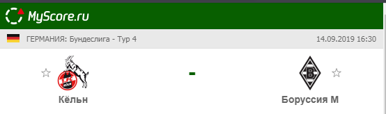 Кёльн (Кёльн) vs Боруссия (Мёнхенгладбах), который состоится 14.09.2019 в 16:30 по МСК.