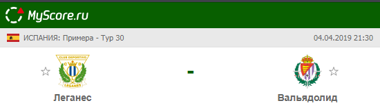Леганес (Леганес) vs Реал Вальядолид (Вальядолид), который состоится 04.04.2019 в 21:30 по МСК.