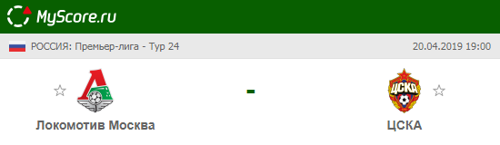 Локомотив (Москва) vs ЦСКА (Москва), который состоится 20.04.2019 в 19:00 по МСК.
