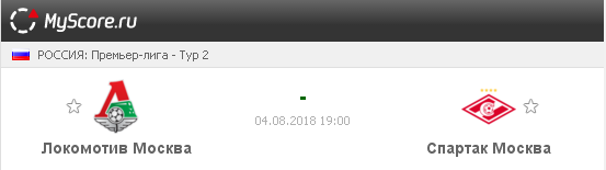 Локомотив (Москва) vs Спартак (Москва), который состоится 04.08.2018 в 19:00 по МСК.