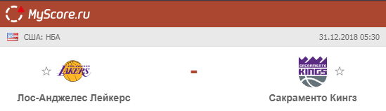 Лейкерс (Лос-Анджелес) vs Кингз (Сакраменто), который состоится 31.12.2018 в 05:30 по МСК.
