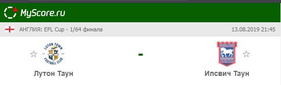 Лутон Таун (Лутон) vs Ипсвич Таун (Ипсвич), который состоится 13.08.2019 в 21:45 по МСК.