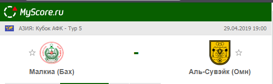 Малкиа (Бахрейн) vs Аль-Сувэйк (Оман), который состоится 29.04.2019 в 19:00 по МСК.