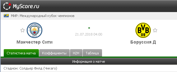 Манчестер Сити vs Боруссия Д, который состоится 21.07.2018 в 04:00 по МСК.